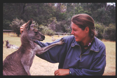 An Känguruhs erinnern in den Städten aber zumindest die Autos, welche oft mit sogenannten Känguruhgittern versehen sind. Diese Stangengebilde, welche vorne am Fahrzeug montiert werden, schützen die Schweinwerfer und die Haube des Autos vor Schaden, sollte man unterwegs mit einem Känguruh zusammenstossen. Die Chancen stehen denn auch gut, dass das erste Känguruh, welches einem begegnet, nicht munter durch die Gegend hüpft, sondern tot im Strassengraben liegt ! Auch andere nachtaktive Beuteltiere, wie zum Beispiel die Beutelratte oder den Wombat trifft man leider nur zu oft eher als 'Roadkill' als lebendig an. Dabei ist vorallem der Wombat bei den Autofahrern sehr unbeliebt. Dieser süsse Kerl, welcher mit seinem breiten Kopf und den kurzen Beinen einem Teddybären nicht unähnlich sieht, versteckt im unteren Teil seines Rückens unter einem weichen Fell eine harte Platte, welche am Boden der Autos grossen Schaden anrichten kann. Da der Wombat zudem lange, unterirdische Gänge baut, macht er sich auch bein den Farmern nicht sehr beliebt. Der Wombat ist übrigens ein entfernter Verwandter des Koala, was auf Aborigine 'Ohne Wasser' heisst. Diesem Baumbewohner wird nachgesagt, dass er ohne Wasser auskommen kann, da er sich ausschliesslich von Eukalyptusblättern ernährt, welche zu achzig Prozent aus Wasser bestehen. Das erklärt wohl auch, warum diese niedlichen Tiere fast zwanzig Stunden pro Tag mit Schlafen verbringen. Wenn man fast nur Wasser isst, will das bisschen Energie, welches man aus der Nahrung gewinnt, gut eingeteilt werden. Vielleicht ist auch seine Irritierbarkeit auf diese Diät zurückzuführen. Obwohl 'Ohne Wasser' also am Liebsten nicht gestört werden will, können viele Tierparks der Versuchung nicht widerstehen, den Touristen gegen Geld einen Koala Bären in die Arme zu drücken und das denkwürdige Ereignis auf einem Photo zu verewigen! Ein anderes begehrtes Souvenirphoto, ist natürlich der Schnappschuss mit Skippy, dem Känguruh. Dazu muss man jedoch nicht in einen Tierpark ! Während zwar einige Känguruharten vom Aussterben bedroht sind, so ist insgesamt die Zahl der Känguruhs seit der Ankunft der ersten Europäer sogar angestiegen. Tatsächlich werden jedes Jahr ungefähr drei Millionen Känguruhs zum Abschuss freigegeben ! Trotzdem sind viele dieser Tiere sehr zutraulich und haben von den Menschen bereits ein paar Tricks gelernt, so zum Beispiel wie man ein Zelt öffnet ! |
