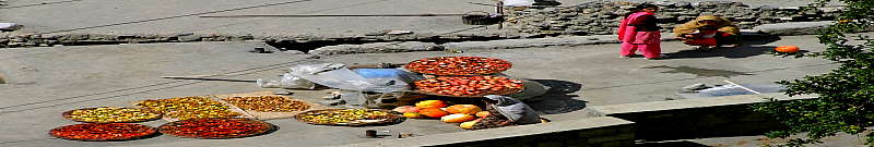 Pakistan, Karimabad, view from Baltit Fort, drying vegetables for winter.