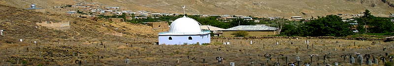 Turkmenistan, Parou Mosque, view over the desert and village.
