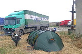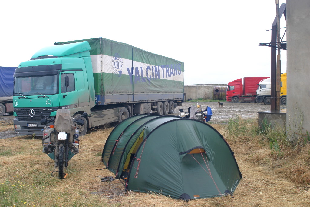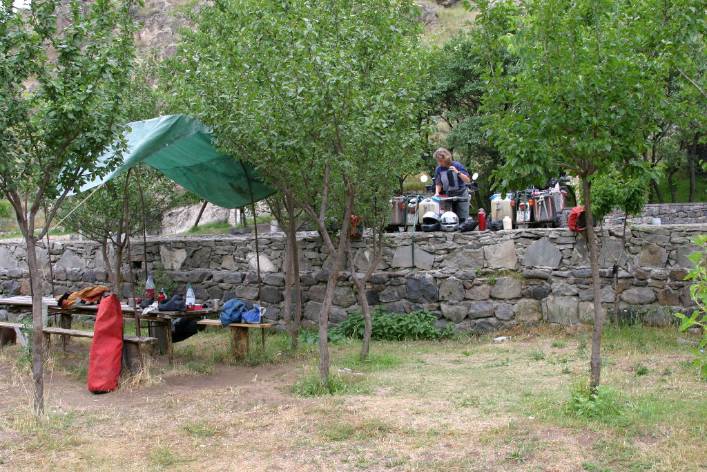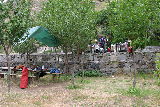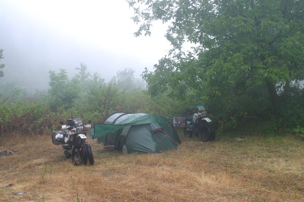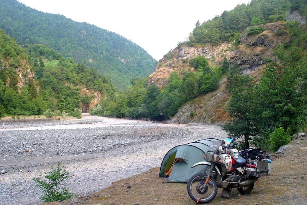 Camping along the river in front of the Vardiza cave city. Ask the guards