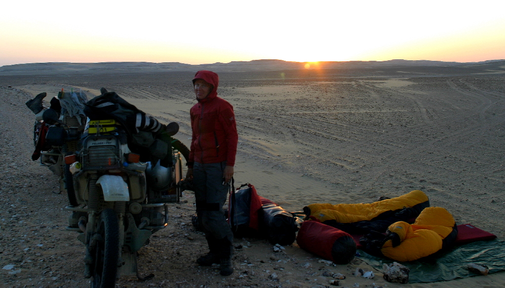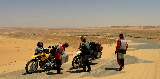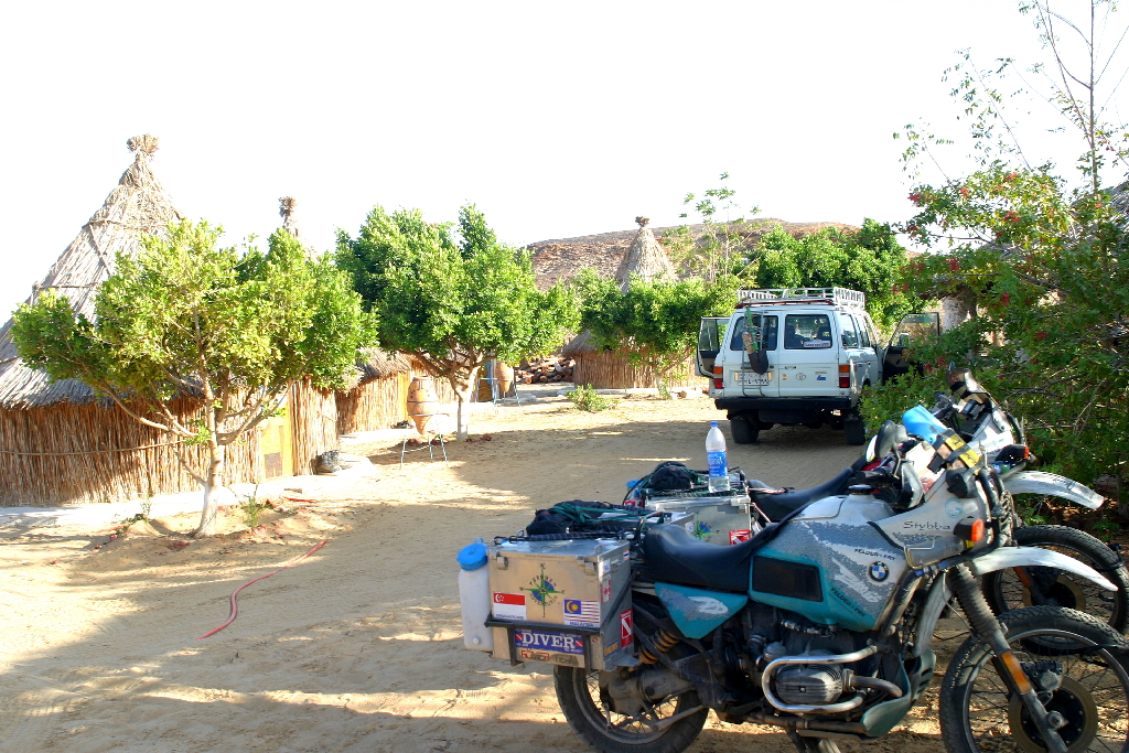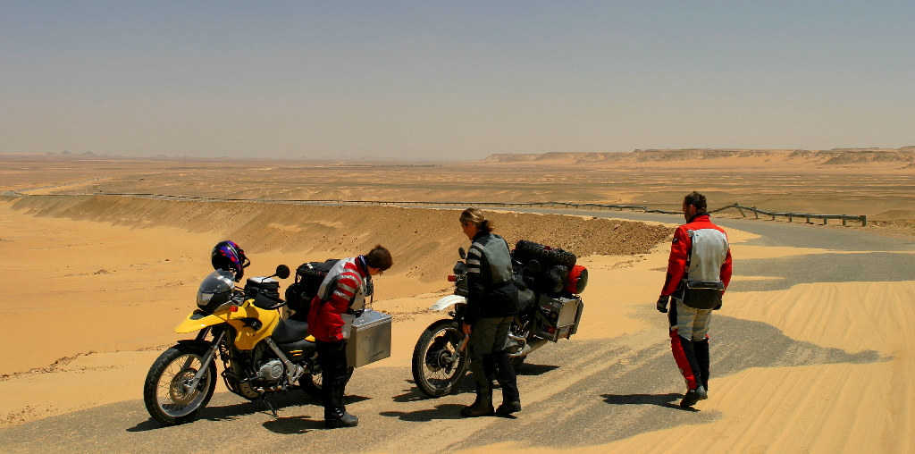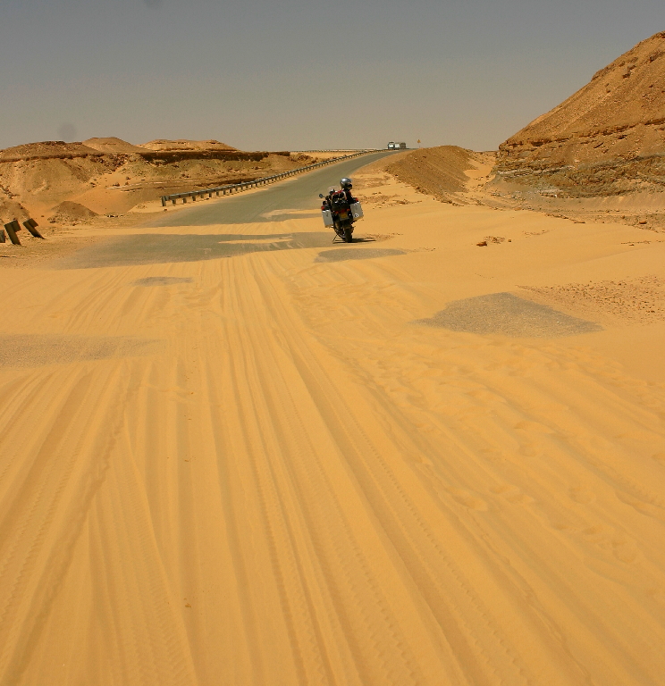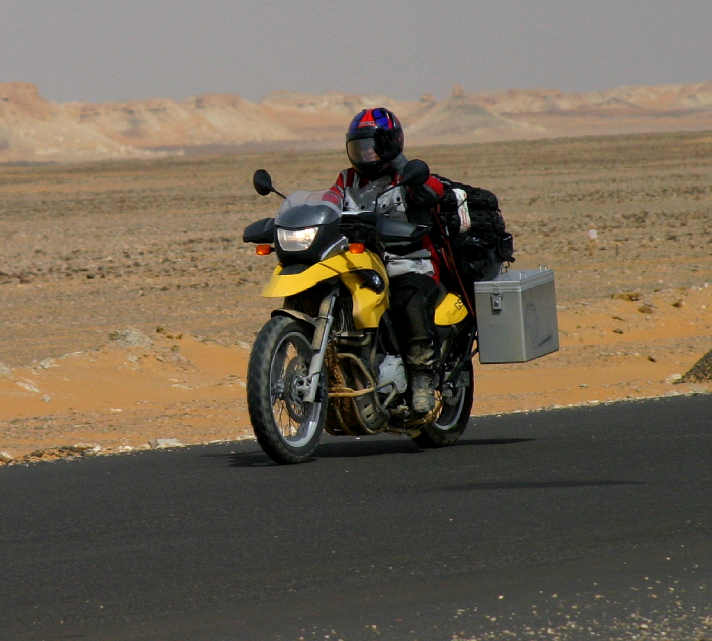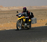 Over dinner than night they told us about their plans to head to South Africa in 5 months from Germany. They had been on the road now for 3 weeks!, and Dagmar had just gotten her MC license before leaving. Pretty brave. We mentioned to them about the Matt & Halszka who were heading the same direction in their Jeep, so we figured they would meet somewhere along the way. They gave us some tips about Syria and Jordan which was nice. The following day we parted company and headed to Luxor. Just outside Mut at Al Kharijah, we picked up an escort (police), who then followed us until the checkpoint north of Baris. Here we took the turn-off to Luxor, and just outside of Luxor we camp wild in the desert. Again very nice, totally alone, quiet, endless horizon, what else could you want.