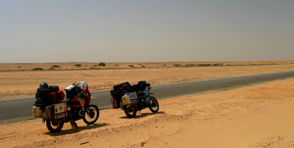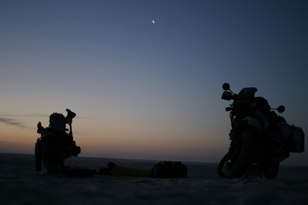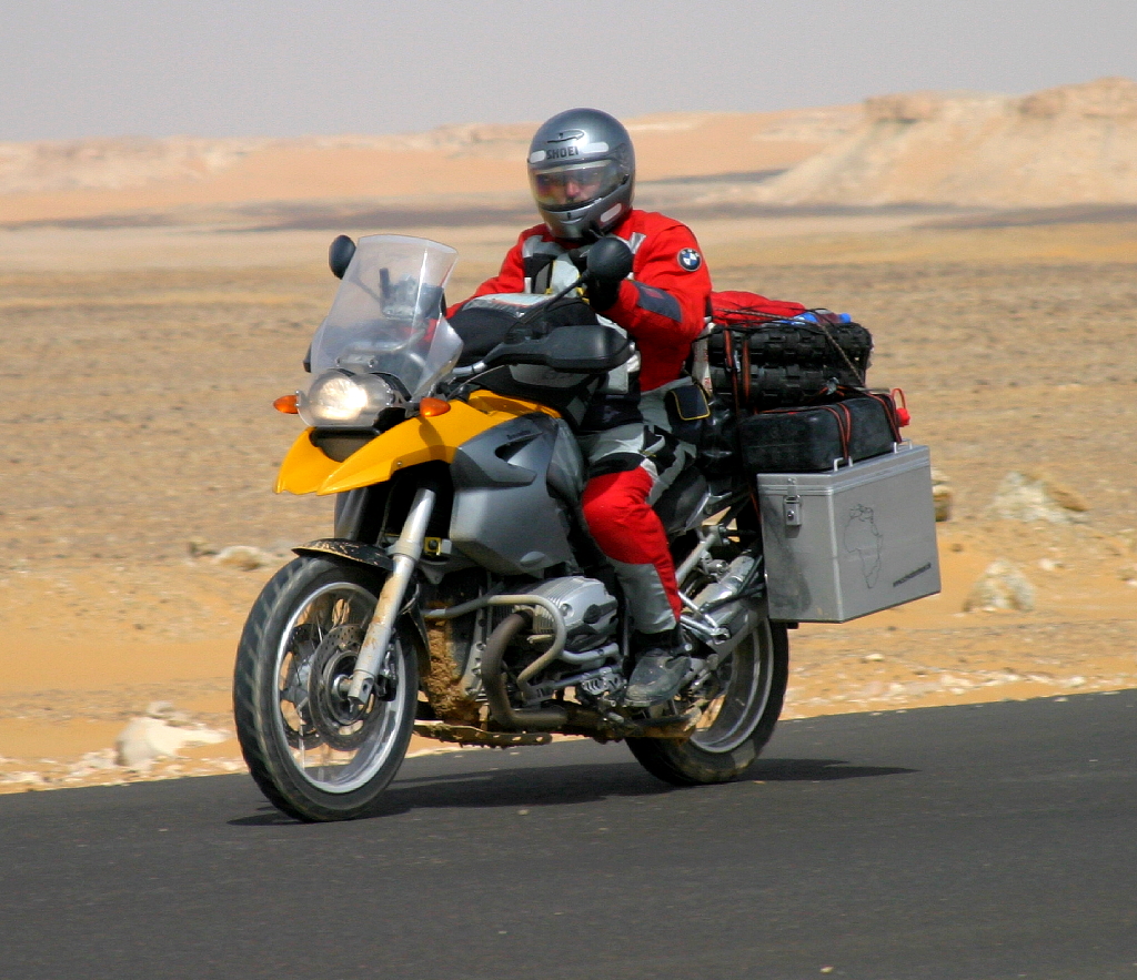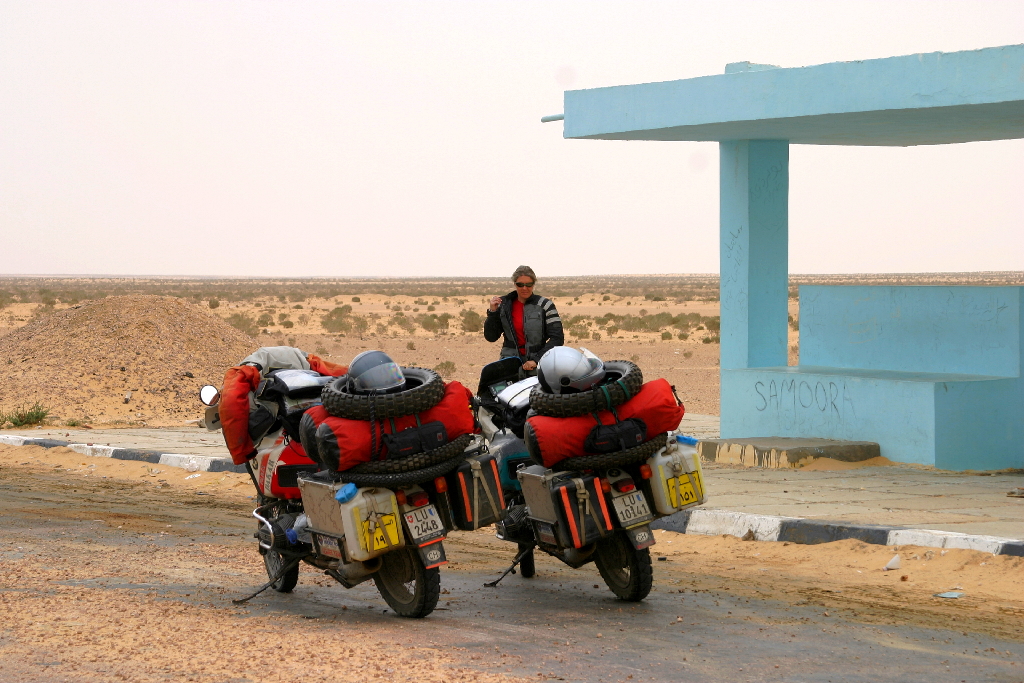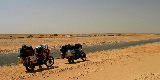 Over dinner than night they told us about their plans to head to South Africa in 5 months from Germany. They had been on the road now for 3 weeks!, and Dagmar had just gotten her MC license before leaving. Pretty brave. We mentioned to them about the Matt & Halszka who were heading the same direction in their Jeep, so we figured they would meet somewhere along the way. They gave us some tips about Syria and Jordan which was nice. The following day we parted company and headed to Luxor. Just outside Mut at Al Kharijah, we picked up an escort (police), who then followed us until the checkpoint north of Baris. Here we took the turn-off to Luxor, and just outside of Luxor we camp wild in the desert. Again very nice, totally alone, quiet, endless horizon, what else could you want.