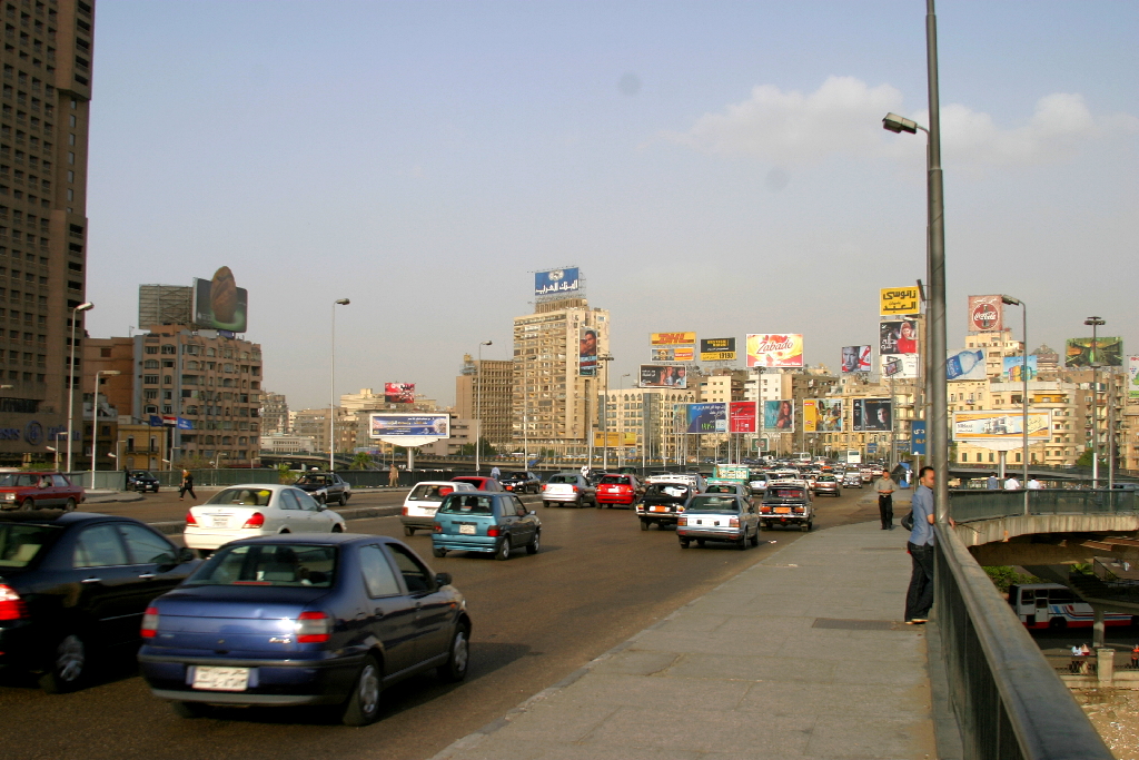 Shortly after El Alamein we headed south on a great toll road across the desert. No traffic and very fast. At the end of this road we hit the junction road into Cairo, and that is when the fun started. First, lot and lots of traffic. The whole road was covered in billboards on both sides of the road. In some places there must have been 10-15 billboards advertising the same product. Totally out of control. The closer we came to Cairo and the Nile valley the more traffic, more people, more green, and more billboards!