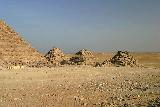 We spent the day walking around and checking them out, oh, and dodging the Egyptian hustlers. The main hassle is camel rides and souvenir hawkers, they simply don't want to let you alone. You can walk far out into the desert and they will find you and hound you merciless. Keep smiling and just say no (la, shukran). In order to get the "whole" experience we climbed inside one of the Pyramids and checked out the burial chamber. Not for those who are even a little scared of small spaces. Not very well suited to those over 1.40m tall either for that matter. The chamber was pretty large and moldy, and was remarkable only for the girl who was sitting cross legged in the corner meditating! We spent a few minutes and left. |