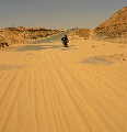 After a couple of days in the oven of Aswan, we were ready to head north. Our destination was actually Marsa Alam but we had heard that the road was closed. We had tried to find out what the convoy situation was at the tourist office, and they "assured" us that we would have no problem going to Marsa Alam, not only would we not need a convoy, but we could take the road that we had heard was "closed". So this was going to be interesting, rule 1, not everything the police tell you is true! In order to stack the odds in our favor we decided to leave early (6:00) to see if we could get to the turn off before everyone was up. Everything started great, the first couple of checkpoints didn't know what to do with us so they just sent us on. By Kaw Umbud, they finally had to do some checking, so they stopped us and made us wait 20 minutes or so while they made some phone calls. We were then surprise when they just said ok, and let us continue. The next problem showed up later in Idfu, here they positively refused to let us continue, even though the turn-off which we wanted could be seen 150 meters up the road. We waited, they telephoned, told us that we weren't allowed on that road, and we would have to take the convoy to Hurghada and take the coast road south again. We explained patiently that, that wasn't what we wanted to do. I even gave away a pack of cigarette to see if this had any influence, no dice. So we waited some more. I asked for explanation why couldn't we go on the road, is there a problem. No problem (mish mushkula), but we still weren't allowed to go. After about 40 minutes, suddenly they came back and said, we could continue. Without any comment we took off as fast as it was prudent. Took the turn-off and in less than 15 minutes were back in the desert. Smooth sailing from here on out!