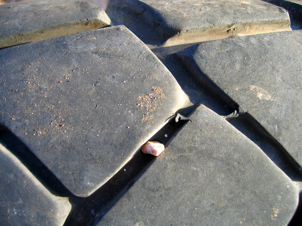 | In the morning the first thing I had to do was fix a flat tire. The rocks here are so sharp one had actually managed to puncture the tire! Only the second flat tire of the trip, and for once it happened at a convenient time, before we packed the bike or where on the road somewhere. |