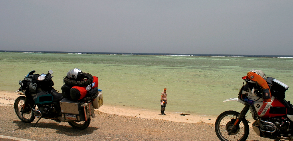 The checkpoint at the coast side seemed very surprise to see us, but let us pass in short order. We had made it to the Red Sea coast! Because of the wind we decided to head north, and passed the various resorts which we knew from our diving excursions. This was a very funny feeling, being somewhere so far from home and actually recognizing something although you had never driven yourself around here.