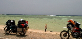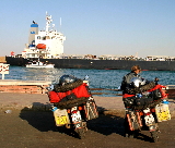 We got everything packed and headed to the port to catch our ferry. Unfortunately, at 7:00 (the time the port opened) someone came out and said "No ferry today". Apparently the wind was still so strong that the ferry wasn't going. So now it was back to the agent who sold the tickets to get our money back, they of course weren't open until 10:00, so we just had to wait. Finally, we got our money and headed north on the coast road. Guess what, yes, a checkpoint, and we weren't allowed to continue without an escort! We couldn't believe it, all our information was that there were no convoys here! Wrong!