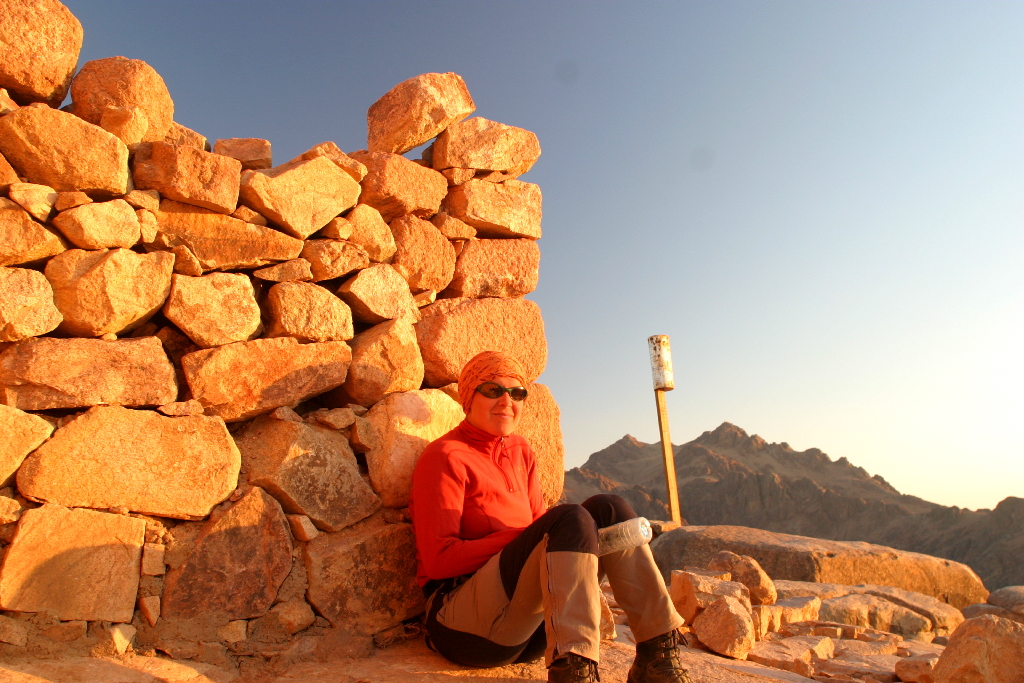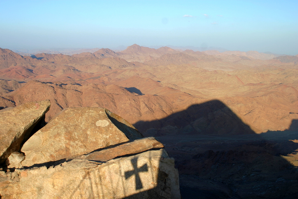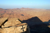 We then walked to the monastery and up mount Sinai, we wanted to catch the sunset from up there, in contrast to most tourist, who apparently come to catch the sunrise from the top of Mt. Sinai. This was one of the tips that we got from Matt & Halszka. There were practically no people, and only minimal hassles from people offering, donkey or camel rides up the mountain. We took the long way around (the camel track) and it took us around 2hours to make it to the top. From there, totally alone we enjoyed the sundown, which was very nice and peaceful. The desert colors really come out, and there is a great view back into the valley across from Mt. Catherine. We then walked down in the dark, taking the "stairs" which is the direct way up/down. We had of course taken flashlights, but with the moonlight they weren't even necessary! I preferred the climb down, which was really spooky, not to mention a bit dangerous.