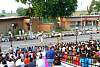 The border at Wagah was fairly painless, if very thorough. They asked a lot of questions, and looked at all our luggage. But I guess since there weren't any other travelers they had the time. While the officials were doing all their paperwork I was fascinated by the spectacle of porters unloading and loading trucks with what looked like rice (going from India to Pakistan). As we pulled up to the Indian border after passing immigration and customs in Pakistan, we found a line of porters dressed in blue leading up to the border gate, and there they get handed a bag of rice (100kg bags!), from another line of porters dressed in green from the India side. Exactly at the border line (shown by a large white line on the ground) one porter takes the load off his head and together they put it on the head of the other porter, and he "sprints" away with his load to the waiting truck. The opposite porter sprints back to get another load. I recon there were 50 porters on each side. The guards carrying bamboo canes kept order, making sure that there was always an orderly line. Occasionally a bag would fall, and no-one wanted to pick it up, since this involved time and considerable effort. So there was a delay until the guard, yelling and hitting his bamboo pole on the ground, insured that the next in line (receiving) together with the fellow behind, picked it up and took off. The guards also made sure that the porters did not put a single foot on the opposite side of the border! In due time, the customs officials were satisfied with our documentation and our property and let us go without any undue haste. For the overview, check out Formalities: India Our first stop in India, Amritsar, where we found a wonderful little guest house; Mrs. Bhandari's (N31 38.504 E74 50.976). Anything good enough for Charlton Heston is good enough for us. The two days in Amritsar where spent doing a little sightseeing and getting Cecilia to an eye doctor. The eye doctor was great, we hired a tuk tuk for the day and he took us to see a doctor arranged by the guest house. When we got there, we were taken straight in, and she was examined, and got a prescription for some eye drops which we got across the street. Everything for 150RS (4.16 Sfr). It was a slight infection and cleared up after a few days. After this we headed over to have a quick look at the Golden Temple. This is the Sikhs holiest sight and was pretty busy (this being Sunday), so we elected to walk around the outside. The temple itself is pretty impressive, with the 100kg (220lbs) of gold applied to the domed roof and a lot of the outside of the building, hence the title Golden temple. Down the road from the temple is Jallianwala Bagh, site of the notorious Jallianwala Bagh massacre, where the British killed 379 and wounded 1200 on the 13th of April 1919. Which influenced Gandhi to start the Non Co-operation Movement which became an important feature of resitance to British rule, which eventually helped India gain its independence. The area has been turned into a quiet park with plaques, a museum, and bullet holes as reminders of the events that occurred here. A very moving sight. In the afternoon we made our way to the Wagah border to watch the flag lowering ceremony. A spectacle which is both, emotional and theatrical in equal parts. There is a lot of marching soldiers, cheering spectators, and an animator to insure that the crowd enjoys the show. The "show" is basically the lowering of the Pakistani and Indian flags by a troop of soldiers who goose step up and down to position themselves for their various duties. The flag itself is taken down in sync with the Pakistani flag, both sides making sure that neither flag is not lower than the other. Beforehand, the animator sends various spectators with the Indian flag running up to the border line and back, each time to tremendous cheers of the spectators. The flags then get handed around and people fight for the chance to wave it for a few minutes before passing them on. The same spectacle takes place on the Pakistani side, although the amount of spectators is only a fraction of that on the Indian side. After leaving Amritsar we headed south to Ganganagar in northern Rajasthan followed by Bikaner where we relaxed for a day. Our initial impressions of India cannot really be better explained than by the quote at the beginning of this journal entry. There really is not subtlety to India, everything is "over the top". It doesn't really matter what the theme is, whether politics, weather, religion, poverty, traffic, or economic growth, everything is done in over large quantities. It is easy to be overwhelmed by the sheer abundance of people, colors, noise, smells, or whatever. So either you will love it or hate it, but it will not be an ambiguous reaction! For our part we loved it and continue to do so. Our primary goal was to reach Goa for a well deserved rest and to re-evaluate our goals. So we traveled very quickly, besides a day of rest in Bikaner, and again in Udaipur; we traveled every day as quickly as possible on the Indian roads. Which as everything else, are somewhere between wonderful and nearly empty (parts of Rajasthan), to horrific and crowded (around Jodhpur or near Mumbai, or indeed any Indian town). Maybe a few words regarding driving on Indian roads might be in order. Basically, the Indians drive offensively and very aggressively. I don't mean that the way they drive offends (well maybe it does), rather they will assume that you will get out of the way. If not you will become a statistic, and appear in the local newspaper which without fail have multiple deaths every single day, which are refered to as "misfortunes". One of my favorites is the fact that their cars, trucks and bikes are extremely underpowered, and at every incline there is a hectic fight for positions trying to overtake the vehicle ahead of them. Regardless of what it is, inevitably, they will cause the oncoming traffic to move to t
