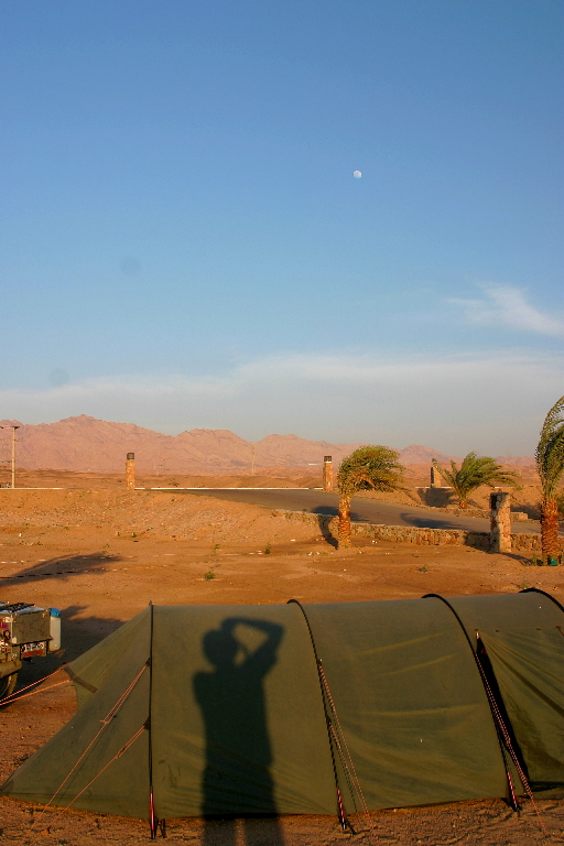 The following day we decided to move down to the beach, where we had found out that there is "free" camping, in zones specially reserved for foreign tourists. Excellent. We also ran into a couple from Tessin (Switzerland) whom we had previously met in St. Katherine in the Sinai. We informed them of our plans, and they also joined us down at the beach.