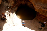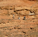The following day after being besieged by locals who wanted to know if we were interested in going to the desert and offering their services in this endeavor, we decided to head off on our own and explorer a canyon which lay just across from the town. Apparently there is a way to go from this side of the canyon to the other on some fairly easy "scrambling" paths. Unfortunately after a day of scrambling around and having a grand old time, we still hadn't found the proper way through, so we called it quits and headed back to camp. We were totally dead, the heat and the exertion of climbing up, down, around, through, over, under, in between all the rocks, canyons, boulders, ravines and valleys had really taken their toll. But we were elated, it had been a lot of fun, if sometimes a bit scary and frustrating not being able to find the right path. And it was great to finally get some exercise, move those bones and muscles instead of just sitting on the bike.