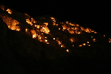 The camp itself was deserted, we were the only guests, and it was very relaxing and quiet. The camp turned into a 1001 Nights Fantasy at night. When they turned the generator on, the hills glowed with a "thousand" points of light. They had placed lights in many of the holes in the rocks around the camp. Some in various colors, and the grounds themselves were also bathed in light. Very impressive. It turns out their main business is as a venue for tour groups to have a night in the desert with food and a show. Sure enough the manager showed up with a troupe of singers/dancers (all men) and they rehearsed for a show the following night. Very interesting, listening to them perform and being the only audience. As soon as they left, they turned the generator on and then the real light show started. It was totally dark, with only the light of the stars glowing in the sky, and then late, the moon came out, and the hills glowed with soft moonlight. Very beautiful. We slept very well, in the totally deserted and quiet "campground".