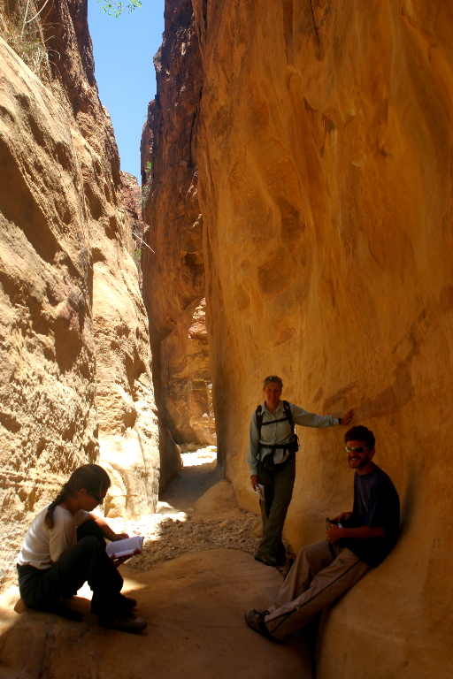 On the last day in Petra, we started by walking through the "Tunnel" next to the entrance to the city. There was a "guide" who tried stopping us from going this way, saying it is too dangerous and we weren't allowed to do it without a guide. A classic method to earn some business. We ignored him and continued. The walk led along a dried river bed, through canyons and ravines, in places so narrow that you had to walk sideways through them. This is probably the best canyon walk any of us have ever done! Towards the end there were then the signs of the Nabeteans who had carved funerary niches in the walls of the canyon more than 2000 years ago. Completely surreal. Not to mention the Water conservation measures they had taken on the canyon itself, by damming part of it, and redirecting other parts, very impressive. By now we were pretty worn out, with all the sights so the last day we left fairly early (only 6 hours), and headed back to camp and relaxation. Our Swiss friends ate dinner with us and then left for Amman and we settled down for a nice little campfire with our friend the Fiddler who came over and made us Bedouin tea on our fire (which he had lit for us), and told us about being part of an Finnish archeological excavation on Mount Aaron back in 2000! Turns out our night watchman besides being a musician, is also an archeologist, and a Sheik (leader of local a Bedouin tribe). His wife and mother are in Lyon France, where his mother is being treated in the hospital (for what we couldn't quite figure out). Strange world.