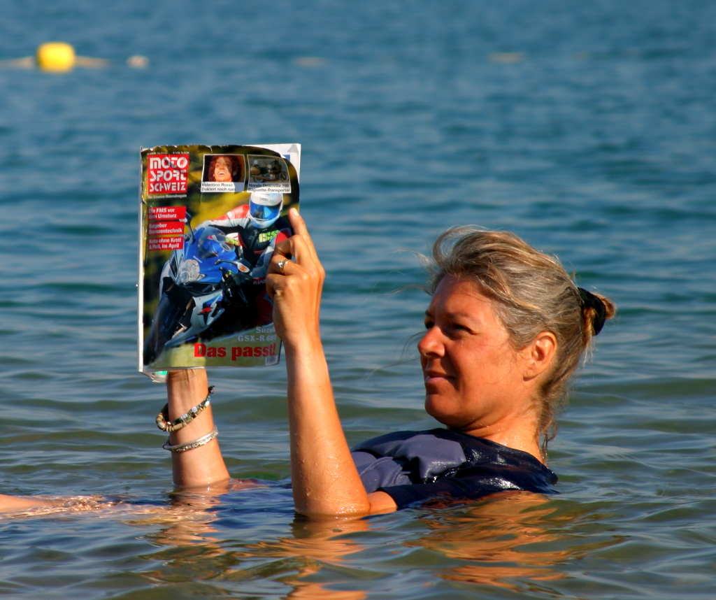 Everybody fighting with the wind makes for some excellent entertainment, and every once in a while an empty can or bottle will literally fly by our tent as we are sitting with out friends Manuela and Francesco (the couple from Tessin), discussing our experience in North Africa. Out in the water, nearly once an hour an un-accompanied blanket, plastic bag, or children's blowup water toy flies by and is well on it's way to Saudi Arabia before anyone can do anything about it.