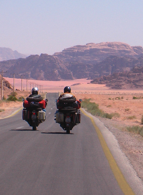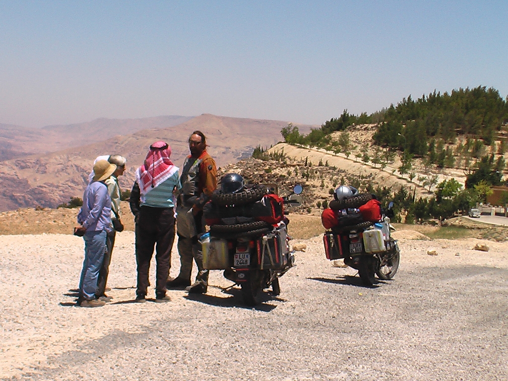 Hello, welcome to Jordan! First, for those of you who regularly follow our pages, you will notice that the text below is in large part the same as the blog. This is because the text is in large part straight from the blog's. We started the blog here in Jordan. It was becoming clear that we simply weren't able to update our pages as frequently as our gentle readers had wanted. So in order to provide some form of content, we came up with the blog, which we then proceeded to update with (alarming) frequency (at least compared to the web pages). As I don't relish having to re-write everything, I simply take the text and expand on it a bit, and add my usual pictures to spruce the whole thing up. It is nevertheless well worth the effort to re-read, as I try to expand and add more info to these pages. You can find details of our exit from Egypt here: Formalities: Egypt and the entry formalities here: Formalities: Jordan. But I have included a short rundown below. Standing in line for a while we got our tickets to Aqaba for a hefty 760 Egyptian Pounds. (This is for 2 persons, 2 motorcycles and includes 50 E£ per person as an exit tax) For anyone headed this way, the ticket office is the building on the right as you face the entrance to the port. There are no signs in English! The office is only open in the morning, although unconfirmed reports say that it should be open as long as the ferries are in port. Also, note that the FAST ferry does NOT take vehicles so you are forced to go on the slow ferry if you have anything bigger than a bicycle. The ferry turned out to be an older Danish ferry, which still had the signs for Fredrikshavn exit on the door. All signs were in three languages, english, german, and danish, with a piece of paper written or printed in Arabic taped up next to the other signs. After all the formalities were done and we were allowed to board, it was 11:15am and we spent the rest of the time just sitting around and reading, the ferry ended up leaving at 15:00 (3pm), and got to Aqaba at 19:30 (7:30pm), for some unknown reason we weren't (everyone) allowed to disembark for a further 40 minutes. Jordan: First impressions 1 - Modern 2 - Organized 3 - Well behaved motorists 4 - The most westernized country we have been to since Spain 5 - Friendly and inquisitive people. 6 - Expensive