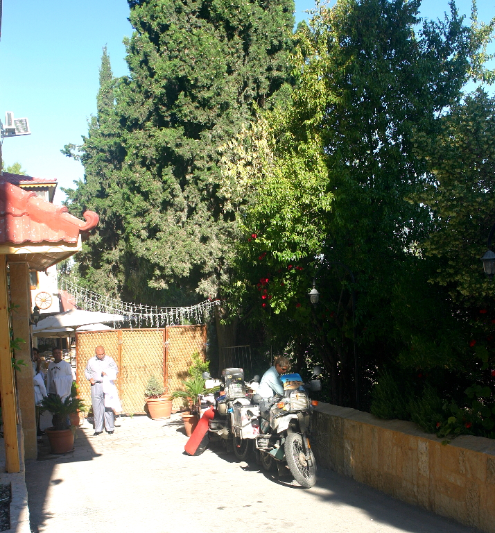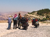The following day we left the Dead Sea, Manuela and Francesco heading back to Amman where they were going to wait for their paperwork for Syria to come through and we headed up the Jordan valley to Irbid. The Jordan valley is very similar to the Nile valley (surprise surprise), lots of military everywhere, particular in the northern end where we neared the Golan heights and Syria, no problems getting through, though once they wanted us to open our boxes. After explaining how much work that was they just waved us through. In Irbid, there is no camping so we found a fairly cheap hotel and asked about prices, negotiated the price down to what we could afford to pay and confirmed that we could put our motorcycles in front of the entrance to the reception. Unfortunately when I went to get the bikes, the Tourist police wouldn't let me drive it down to in front of the reception (the road was blocked). Naturally I informed the hotel of this, and this then started a huge discussion between the hotel staff and the police. In the end we waited an hour for some other police to show up, they inspected the content of our boxes and luggage and then allowed us (reluctantly) to park where we wanted to. A real production, the hotel staff was very apologetic, if not apoplectic that the police was being so "difficult". We don't know what exactly the problem is, we have never had a problem with the Police, if anything the hotel will say we can't park somewhere. Nevertheless, Irbid turns out to be a great little town. It is a university town, no tourists anywhere to be seen. Too bad that they don't have a campground. Not much to "see" or do, but excellent to get a realistic feel for life in Jordan.