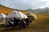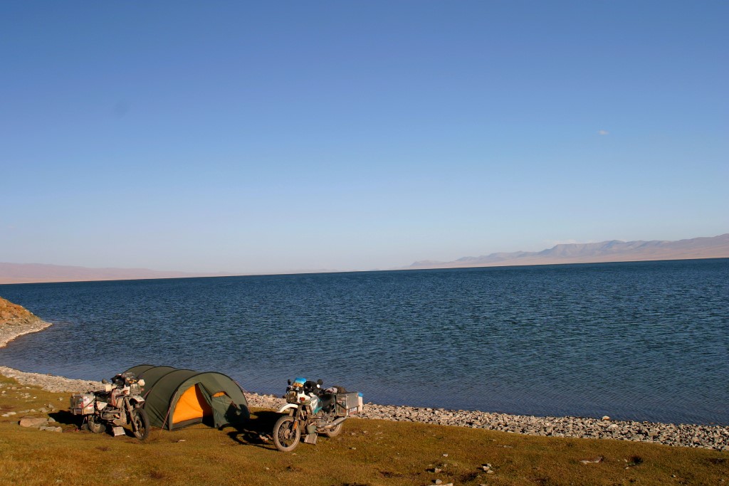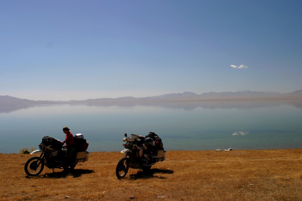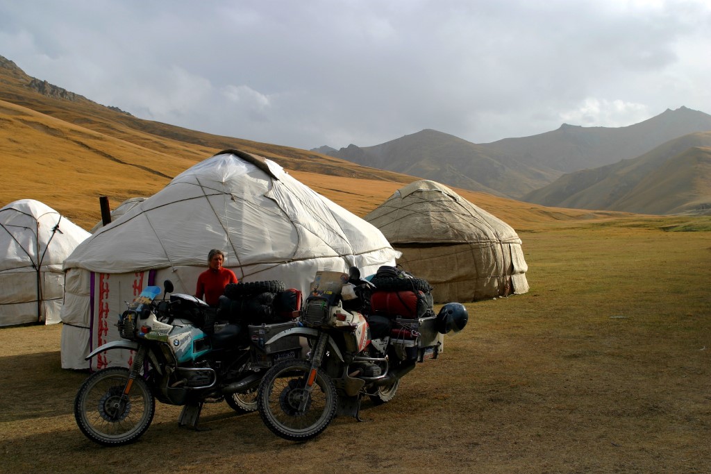 Getting out of Kazakhstan and into Kyrgyzstan through the border at Kegan was even easier than getting into Mongolia, we are starting to enjoy this. In total it took 15 minutes for both borders, unheard of in this part of the world. Maybe because it was a Sunday? For the overview, check out Formalities: Kyrgyzstan Kyrgyzstan turned out to be a real gem. Beautiful vistas, very friendly people, and some excellent (MC) roads. The first night we spent at the Turkestan Yurt camp in a "traditional" (tourist) Kyrgyzstan yurt, in Karakol. Cute, but the camp was really nice. All around the vistas had one mountain higher than the other, all covered with snow. We spent the next couple of days making our way toward the Chinese border with a couple of side trips along Lake Issyk-Kul, and Song Köl, both very scenic areas. Lake Issyk-Kul is a major tourist attraction (at least during the soviet era, now mostly abandoned, but slowly being rediscovered by western tourists, who mostly come here for the mountain trekking), not to mention that it was a testing ground for submarines during the cold war. Song Köl is, at 3000 meters, a very high alpine lake. The northern shore nearly deserted, and perfect for some beautiful lakeside camping. To some extent we almost felt we were back in Mongolia. The vistas not quite as empty or large, but very similar. I should also note, that it was starting to get seriously cold up here. As soon as the passed its peak, it was time to get a thick sweater out. In the mornings, our bikes were covered with frost. We spent our last night in Kyrgyzstan in a real Yurt near the old Caravan fort of Tash Rabat near the border to China. This was also a stop on the silk road, and is situated in a narrow valley which if followed up will end up on a very high plain and a lake (Chatyr Köl) along the Chinese border. The family we stayed with was extremely hospitable and the yurt very comfortable. One day I hope to come back here and spend more time, but we have to get to the border as there will be a guide waiting for us on the other side. The following morning we made our way to the border. Before the first checkpoint, my motorcycle celebrated a momentous occasion, it turned over 300,000 km, so I stopped and took a picture. The border was un-eventful. The Kyrgyzstan side only had a small objection to the fact that we had no Fax as invitation to enter China. They are aware of regulations that foreigners with their own vehicles require a guide on the Chinese side, and want to make sure that they don't have to re-process anyone that gets turned back. We showed them our e-mail invitation and they let us pass. At the top of the Torugart we had to wait around 40 minutes for the Chinese guide before being allowed to pass. |