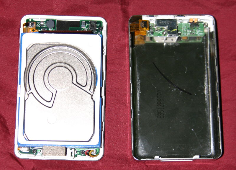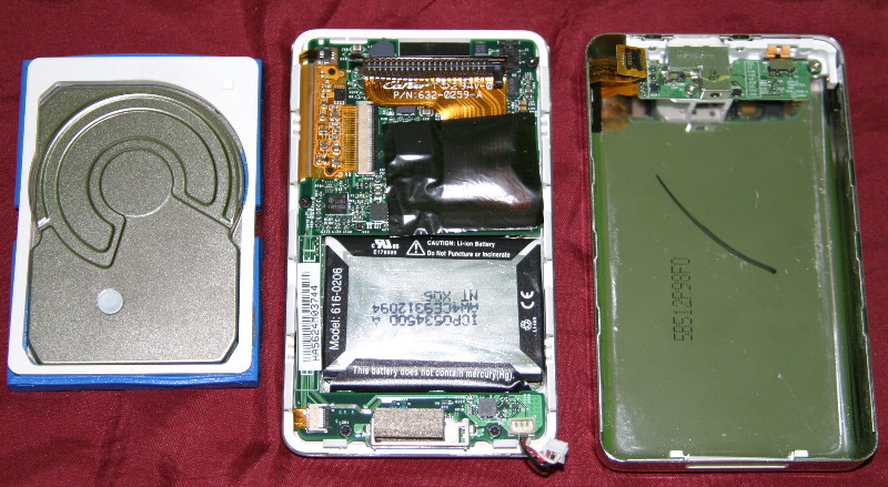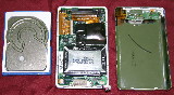Toward the end of the year it was clear that my IPOD no longer had enough power to do the job. I had tried using it as an external hard disk at the local internet cafe, and found that it only ran approximately 50 minutes. This made it next to useless as an external hard disk for my long internet cafe visits. So after doing some research on the web, I found an outfit in America which would happily send me a new battery and assorted tools in order to get a new battery installed. I ordered the material and in 5 days it was in my hands The first problem was getting it open. It is no joke that you will certainly break a nail or two if you were to try it with your bare hands. In no time at all I broke one of the tools they had included. Luckily for me they sent three (almost identical). The tools to open the case are plastic "spoons" that you insert between the case along the side. The whole top part (while) has hooks along the side which go into the bottom case, so the tools need to be jammed in to pop the "hooks" loose. Do it carefully inserting the tools at two points along the case not too far from each other, and pushing them slightly inwards. As you push down on it the case will pop open. The trick is finding the best place to insert the tools. Try the corner and along the long edge. .The trickiest part other than getting it open is making sure that the you don't break the audio connector The connector is attached to the bottom cover, so when prying at apart be very careful. Breaking this will ruin your day. After that it is pretty straight forward, just follow the instructions. They included tools for the small screwdrivers in the case, although the instructions miscounted one the screws (there was one less to unscrew than what the manual says.). Once I was sure that there were no more screws, the motherboard lifted easily away, and underneath was the battery. Just pry it loose (it is affixed with some adhesant) and pop in the new one and then put the unit back together. What could be easier. Your IPOD now has a battery with 1200ma of power rather than the original 700ma. As a side note, once this was done, my IPOD ran just over 7 hours (yeah, I know this is not much, but the reason is RockBox, which is yet to be optimized for battery usage), were I to run the Apple firmware I would get around 20hrs. Of course as luck would have it a few weeks later, it got dropped and killed the hard disk. So the battery change was for naught. I did get a replacement unit a couple of weeks after this, which of course has a new battery, the playtime now being the same as with the new battery! Definitely a do-able job, regardless what Apple says, and I love RockBox, no more I Tunes, I can play practically any format on the planet etc. I will write a separate article about RockBox at some future time.