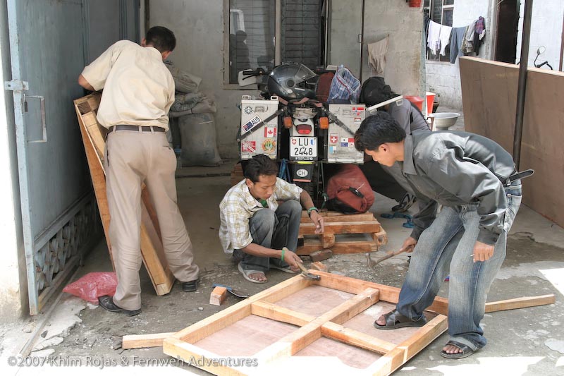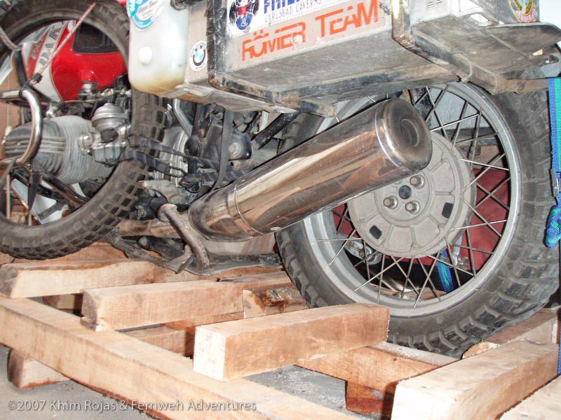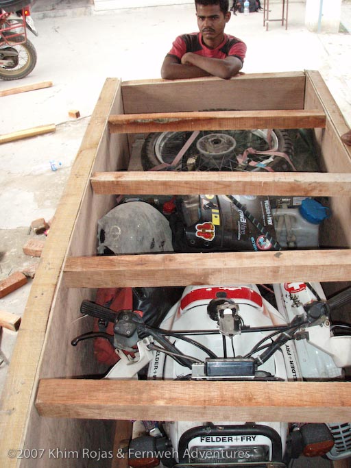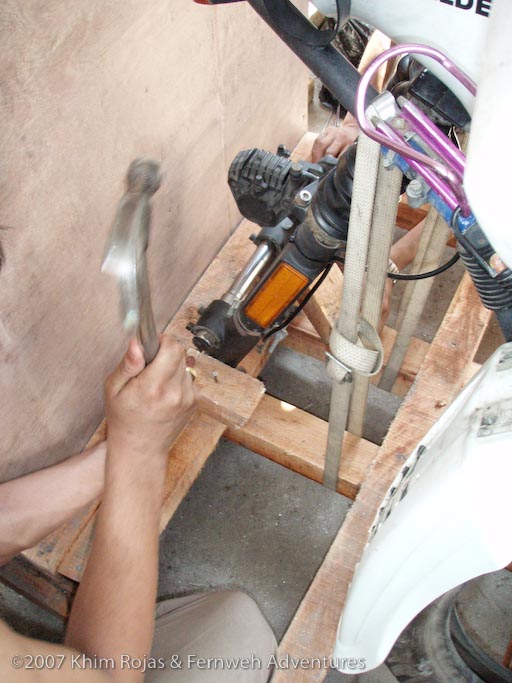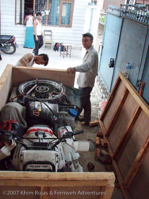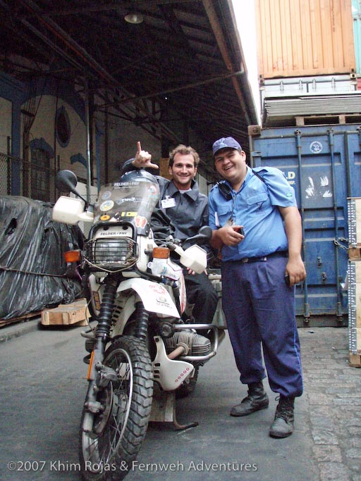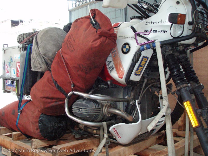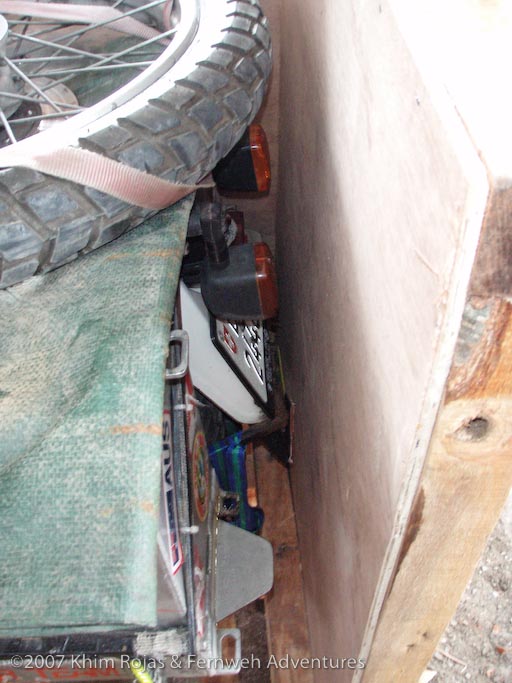 Overview Shipping a motorcycle from Kathmandu is pretty simple. There are probably over 100 shipping agents which will help you get rid of your money and get your vehicle to where you want to go. This being Kathmandu the general direction is Bangkok. I on the other hand wanted to get my bike shipped overland to India and from there by boat to South America. The reason for my decision to ship by boat rather than by plane was a financial one. A lot of people argue that the cost of waiting around for the bike to show up offsets this and in the end both are about the same price. I don't agree, and therefore did it this way. First step, find a reputable agent. Good luck!! I went around and spoke to a number of them in the Thamel area, I also did some research on the net. In the end my impression was that it was just luck of the draw. Some people would give one shipper high remarks, while two months later someone else would write something totally different, and no-one wrote about shipping by sea from Kathmandu. So in the end I went by gut instinct and chose the guy who had the nicest looking secretary. Who also happen to quote me a price which was in line with my expectations. The agent I chose, Sunrise Cargo in Thamel (sunrisecargo@wlink.com.np) had a nice office just up the road from the KGH (Kathmandu Guest house). Their main business is clothing manufacturing and exporting so they have experience with shipping freight (www.nepcloth.com). Mr. Bishwal Buddhi and his staff were very friendly and professional so in the end it was an easy choice. The name which shows up most often when shipping from Kathmandu is Eagle Eye Exports, I spoke to them but in the end they were both considerably more expensive and I simply didn't get a good impression. Procedure: Once everything was agreed on Mr. Buddhi sent his packer to my hotel to measure the bike so that he could purchase the wood. This was when the "problems" started. Measurements were taken, and I explained that the front wheel would be taken off and the whole bike compressed down with straps, and although they seemed to understand I wasn't all that sure. I also went to their place of business and we discussed the required materials. We made a few sketches and made some more measurements, in the end I felt I had made it clear what was required, so I had a pretty good feeling. The crating of the bike took place 4 days later. When they came to get me, they were carrying the panels pre built for crating the bike. Bad news, as I was sure they were not using my measurements, but rather their own. We drove to the warehouse/factory of Mr. Buddhi and there began to pack the bike (another plus, there was plenty of space to build/assemble the crate, and store the crate until the truck picked it up). Of course the measurements were incorrect, the result of which was that they had to take apart and rebuild a lot of their work. As they had no power tools they ended up having to do it by hand, and because of this the box ended up being around .5cbm larger than it should have been. In the end a pretty costly issue. I did manage to get it a lot closer that it would have been if they had just assembled what they had brought. But at this stage that was all that I managed. My previous effort to insure they used my measurements and not their own having failed. In addition, the wood they brought and with which they had pre-built the crate was pretty badly curved, and some of the boards were cracked. Nevertheless we proceeded and around 6 hours later it was done. On the 21 of May, once the bike was crated, I handed the Carnet De Passage (motorcycle bond/customs document) to Mr. Buddhi and this together with copies of my passport and vehicle papers, as well as a short packing list, and a paper giving him permission to export the bike in my name, was all that was required. The bike was put on a truck the following day and sent to the border. The bike landed in the port of Kolkata without any further delay. There it waited for a full container before the bill of lading could be filled out and returned. I decided to wait in Kathmandu until I had all the required paperwork, and was sure that the bike was on its way. This is of course not necessary as the paperwork could be sent anywhere the receiver is. But I wanted to make sure there weren't any surprises, and I figured it would be cheaper to stay in Nepal as long as possible rather than spend the time waiting elsewhere. The Carnet de Passage was brought back by the truck and I received it approx. 3 weeks after I gave up the bike (the carnet was stamped out on the 6th of June!). On the 19th of June I received the rest of the documents, the most important being the Bill of Lading without which I could not pick up the bike, and various receipts of payment. The ship, Pacific Envoy, left Kolkata for Singapore on the 17th of June. The shipment would be trans-shipped to the Kota Kaya, which would leave on the 30th of June for Santos, Brazil, where it was scheduled to arrive on the 22nd of July. So, so far so good. Now I could finally start getting ready to leave. Receiving: Kota Kaya (the ship bringing my bike..) Overview: A number of people had told me that getting the bike into Brazil was going to be complicated. Full of bureaucracy and delays. But I found that the people were all very friendly, and professional. And although they had no previous experience with this process, they did their best to make it as quick and painless as possible. So my impression is extremely positive. Once the receiving agent has cleared the paperwork, the customs can start theirs. Even if the ship is not in port yet, so it helps to get there early. Once the ship docs there is a 2-3 day delay while the partial container is processed. All in all, it will take around 10 days average to get your goods once the ship has unloaded.Procedure: First I contacted the receiving agent, and after getting the proper contact, went to Santos to meet him and fin